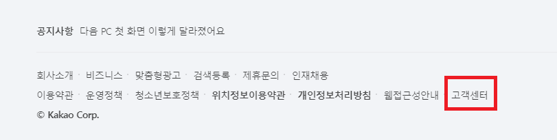 그래서 저는 이 문제를 어떻게 해결해야 할까 고민하다가 다음 포탈 맨 하단에 보니 고객센터가 있더군요. 그래서 다음 고객센터로 들어갔습니다. 고객센터에서 이런 문제가 있는 건지 알아보는 게 좋겠다고 판단을 하였습니다