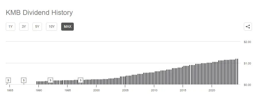 계속 우상향 하는 그래프를 보여주고 있음을 알 수 있다. 배당을 본다면 킴벌리클라크도 좋은 선택지가 될 것 같다.